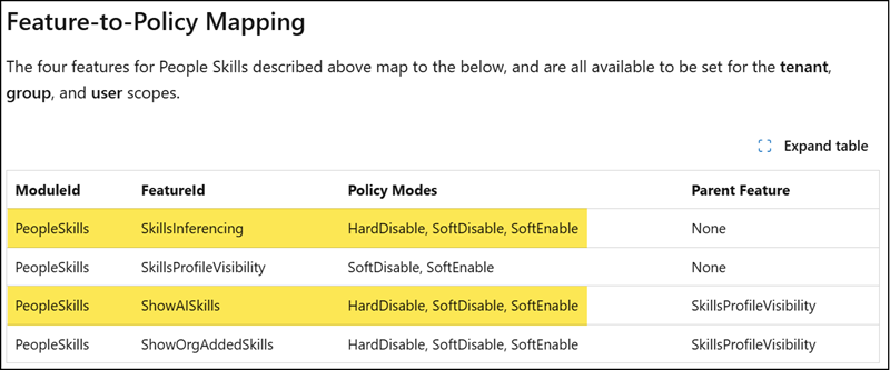 - AI-powered skill inferencing is enabled by default. Admins can control AI skill inferencing features via Viva feature management policies.